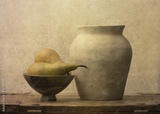 Fruit still life with pears on wooden table. Vintage rustic food image with artistic texture effect.
