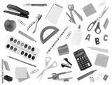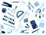Arrangement of various school supplies, isolated on white. Suitable for use as a back-to-school background.