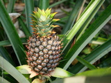 Young pineapple fruit on tree plant with natural green background, Tasty tropical fruit on the farmland