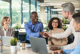 Diversity, professional and employee business people shaking hands in the office for a deal, collaboration or onboarding