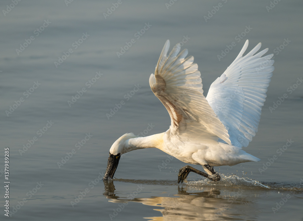 Majestic Black-faced Spoonbill Wading in Tranquil Waters