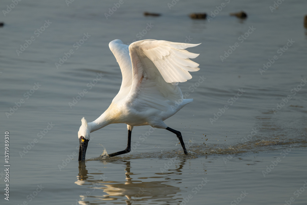 Majestic Black-faced Spoonbill Wading in Tranquil Waters