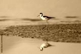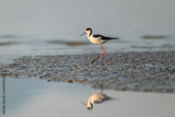 Black-Winged Stilt Carefully Navigating Shallow, Rocky Waters
