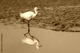 Snowy Egret's Mirror Reflection in Tranquil Waters