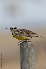 Eastern Meadowlark perched at sunrise on Joe Overstreet Road near Lake Kissimmee Florida