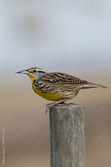 Eastern Meadowlark perched at sunrise on Joe Overstreet Road near Lake Kissimmee Florida