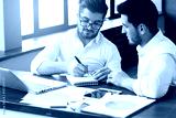 two young businessmen working at modern office.