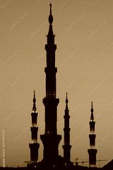 Minarets of the Masjid an-Nabawi Mosque, where the tomb of Prophet Muhammad is located, in Medina, Medina, Saudi Arabia.