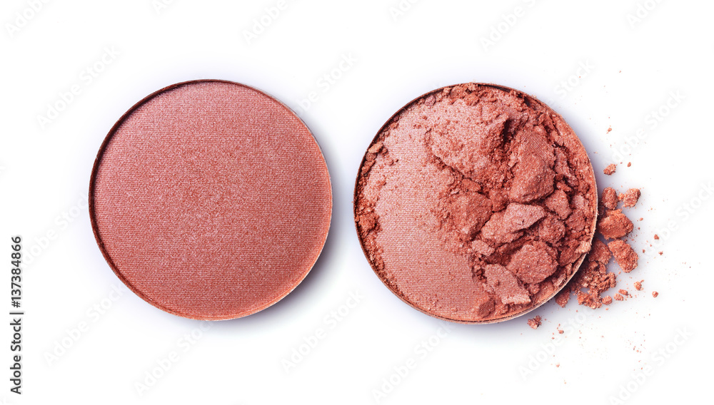 Round beige crashed eyeshadow for makeup as sample of cosmetic product