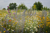 Piękna naturalna łąka pełna kwitnących kwiatów i ziół