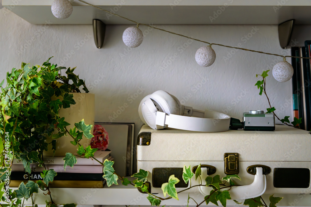 Zbliżenie na przedmioty na półkach w pokoju nastolatki