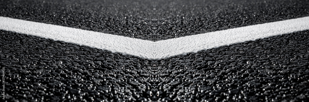 Detailed view of asphalt with freshly applied thermoplastic road marking