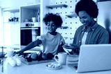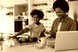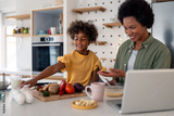 Joyful African American Mother And Daughter Preparing Healthy Meal Together In Modern Kitchen