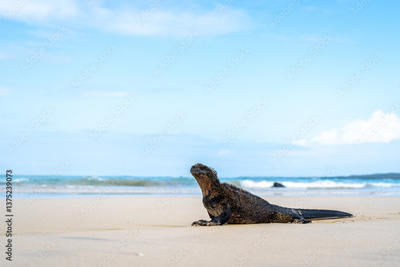 Marine iguana on the sandy shores of Isabela Island, Galapagos Archipelago, Ecuador