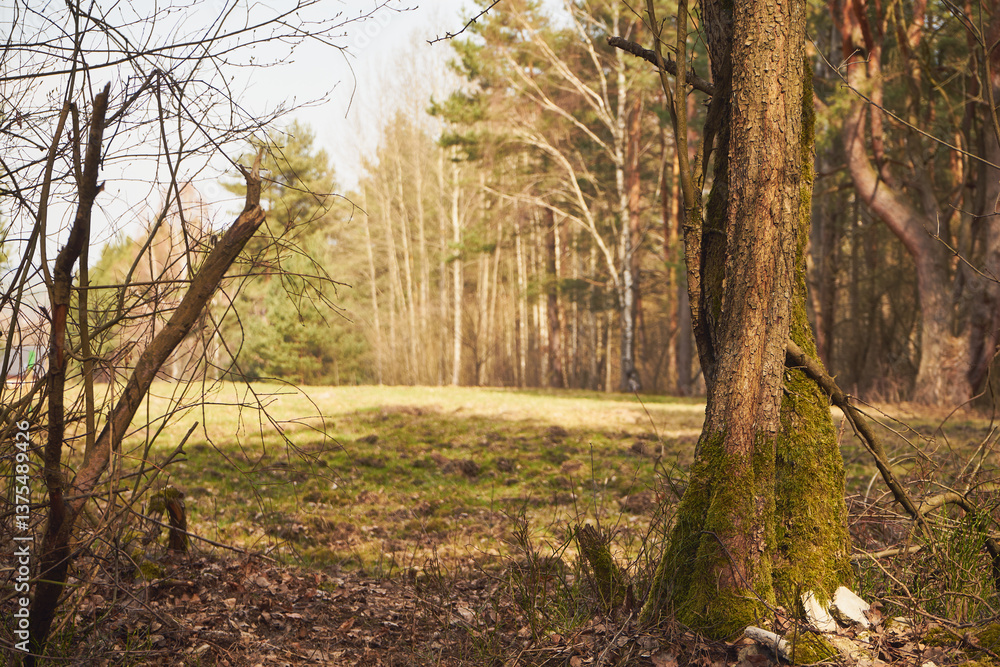 polana,drzewa,niebo,wiosna