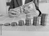 Counting cash and organizing coins in a modern office
