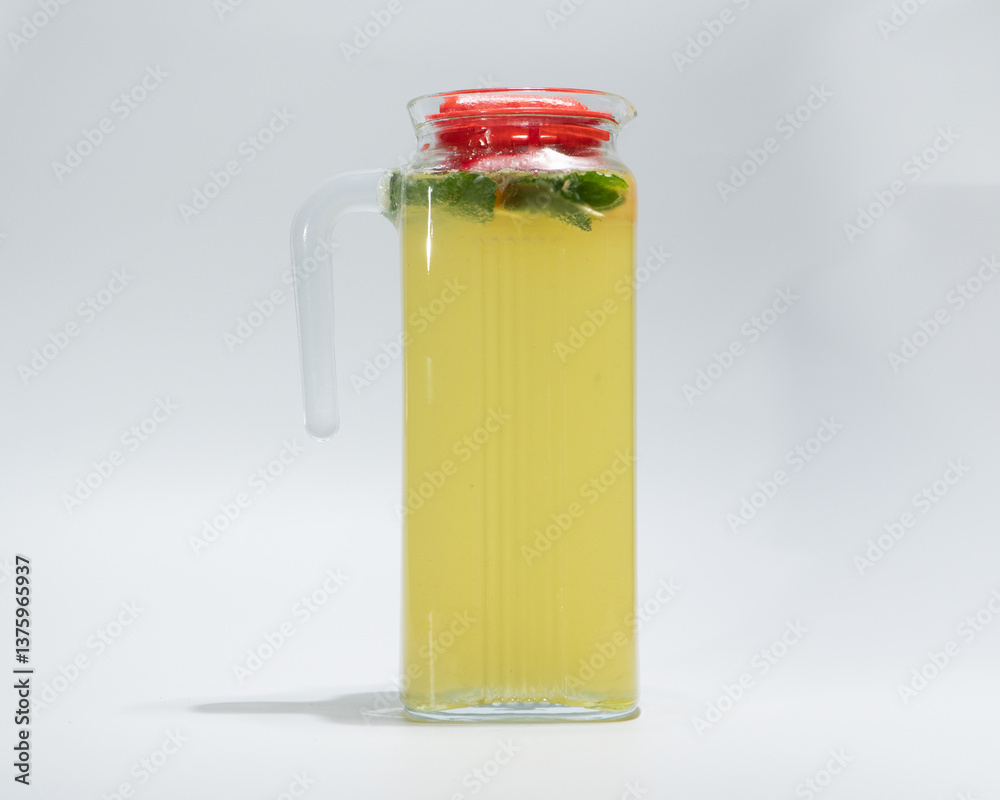 Refreshing Homemade Lemonade in Glass Jar with Mint Leaves on White Background