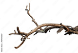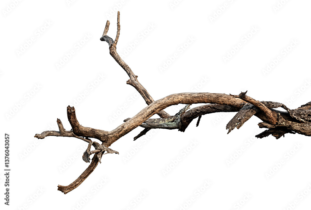 Branch of dead tree with clipping path isolated on white background. Dry wooden from the forest.
