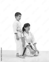 Athletes with a smile on his face and in karategi