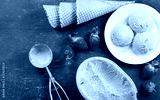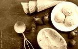 strawberry ice cream scoops and waffle cones