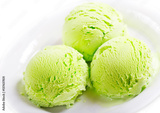 plate of pistachio ice cream scoops