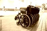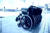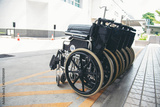 Rows of wheelchairs parking for disability patient services in medical hospital with copy space. Group of wheelchairs Row hospital service for handicap equipment disability person. Healthy Lifestyle