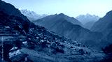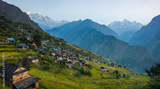Panoramiv view of Muri, nepali traditional village, in Annapurna region, Himalaya. Dhaulagiri circuit trek, Nepal.