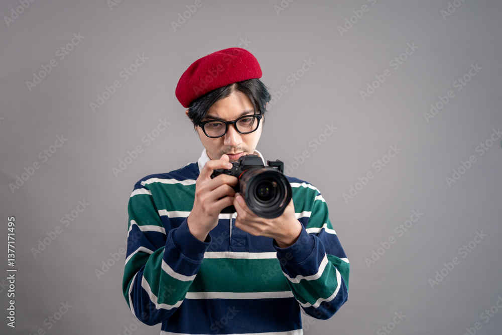 Asian cameraman working and shooting model in the photography studio.