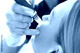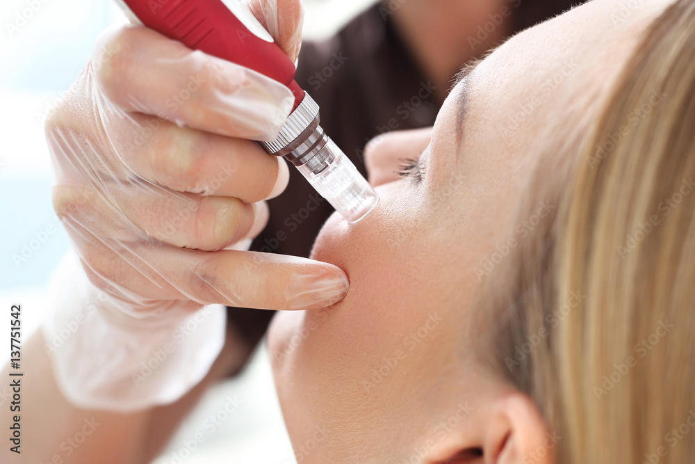 Mezoterapia igłowa, lifting twarzy. Kosmetyczka wykonuje zabieg mezoterapii igłowej na twarz kobiety