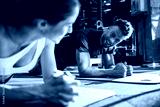 Young Couple Performing Plank Exercises Together in Modern Gym Setting