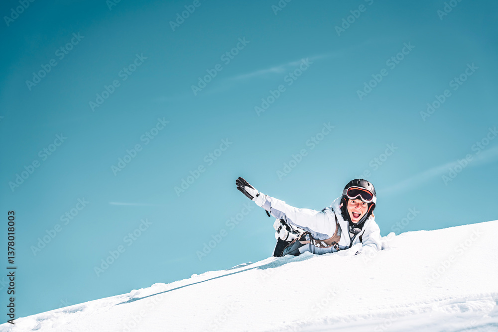 Photo of happy woman on top of Groste hill in Madonna Di Campiglio