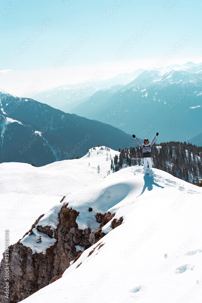 Photo of woman hike in snow on top of Spinale hill