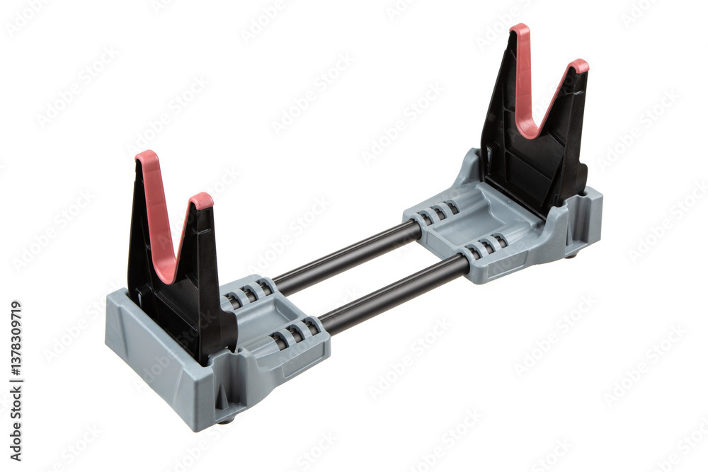 A durable firearm vise with adaptable clamps, ideal for holding guns securely during maintenance, displayed on a minimalist white canvas.