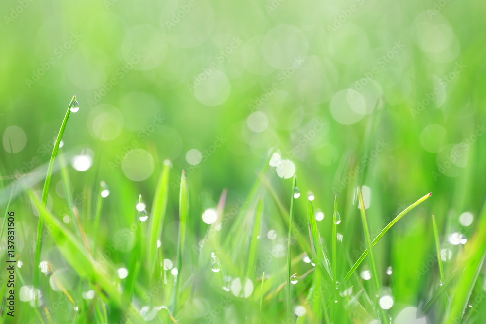 Green grass with dew drops