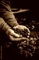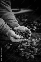 Bałtycki bursztyn. Surowe kamienie do obróbki trzymane w dloni.