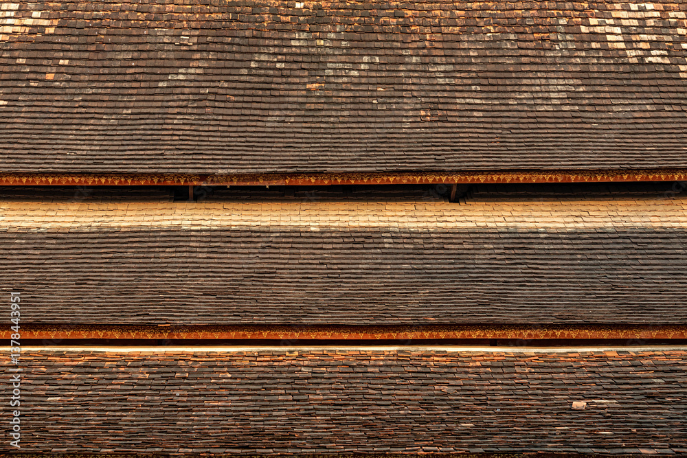 Ancient temple roof made from clay tiles, handicrafts, ancient patterns