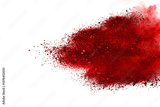 Red color powder explosion isolated on white background. Colored cloud. Colorful dust explode. Paint Holi