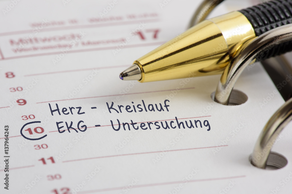 Terminkalender mit Eintrag für Herz-Kreislauf Untersuchung
