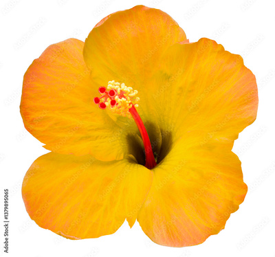 Beautiful Yellow Hibiscus flower with leaf isolated on white background, Hibiscus flower on White Background PNG File.