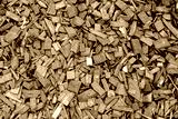 Red-brown wooden mulch for landscaping and gardening, natural texture for ground coverage and soil health