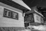 Cottage in UNESCO village Vlkolinec at winter night, Slovakia