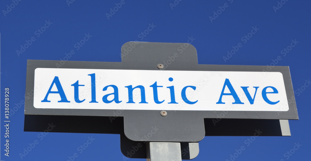 Atlantic Avenue sign under blue sky. The East Coast's most funnest summer avenue!