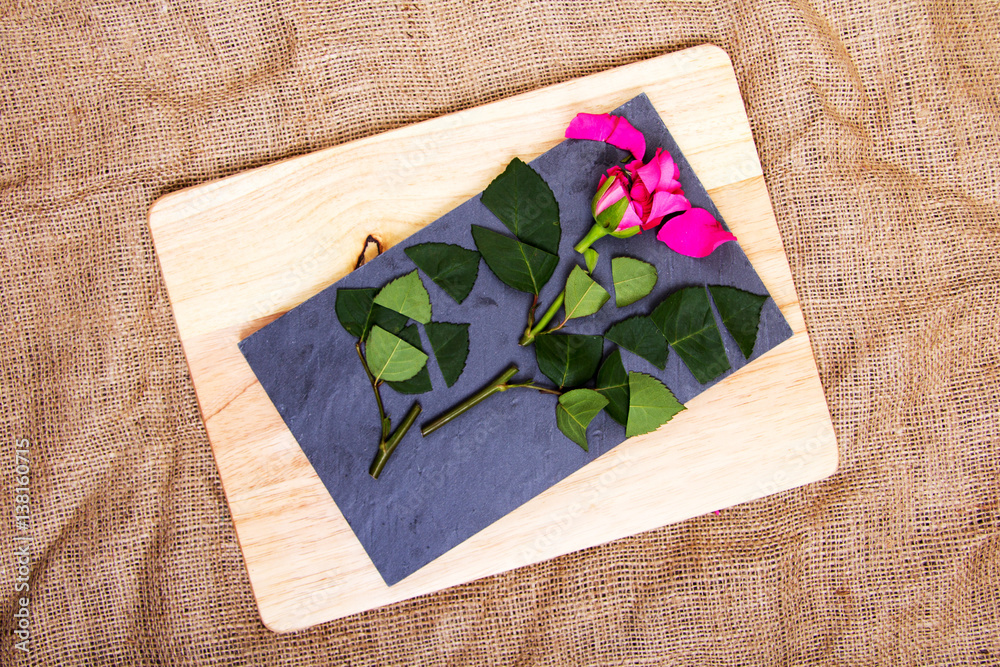 Rose cut up on piece of slate