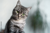 Beautiful American Shorthair cat with green eyes