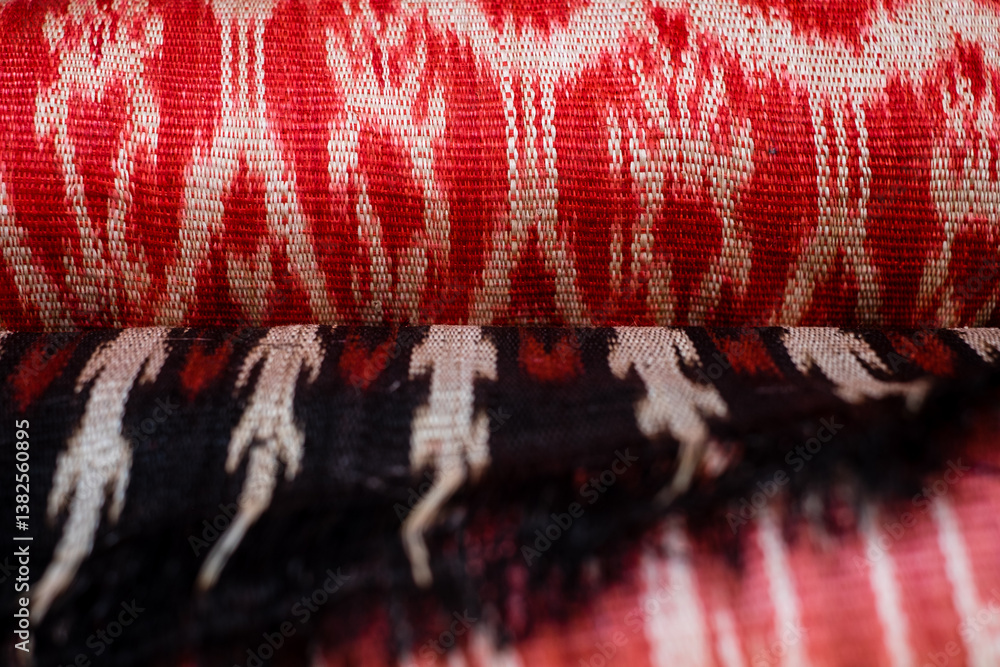 Closeup of T'nalak clothes in various colors and design patterns made from quality Abaca plant fiber, hand crafted by indigenous people in the south of the Philippines, Lake Sebu & T'boli. Animal free
