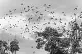 Scarlet ibis flying back home to their sleeping place, Revoada dos guaras on the Delta of the Parnaiba River in Brazil