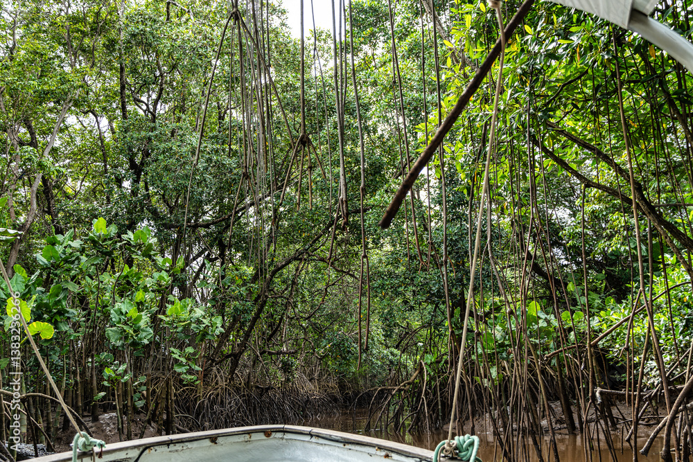 Boat trip on the Igarape do Urubu River, Delta das Americas to Ilha das Canarias, Brazil. South America
