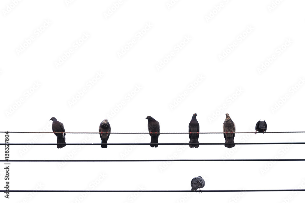 pigeon sitting on power lines .