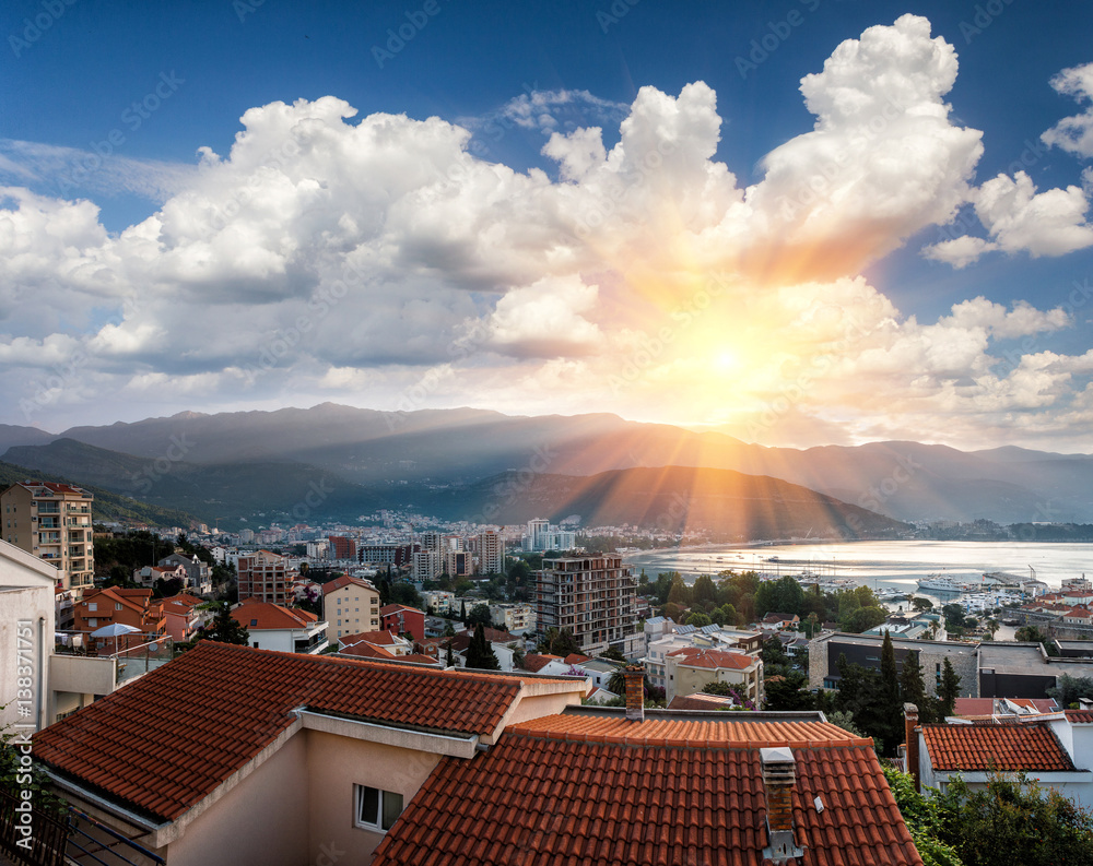 Panoramic landscape of Budva at summertime. Montenegro. Adriatic sea. Europe.