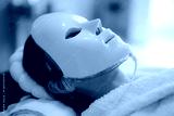 Woman Getting Red Light Therapy for her Skin with Mask. Lady using professional services in a beauty salon for skin care